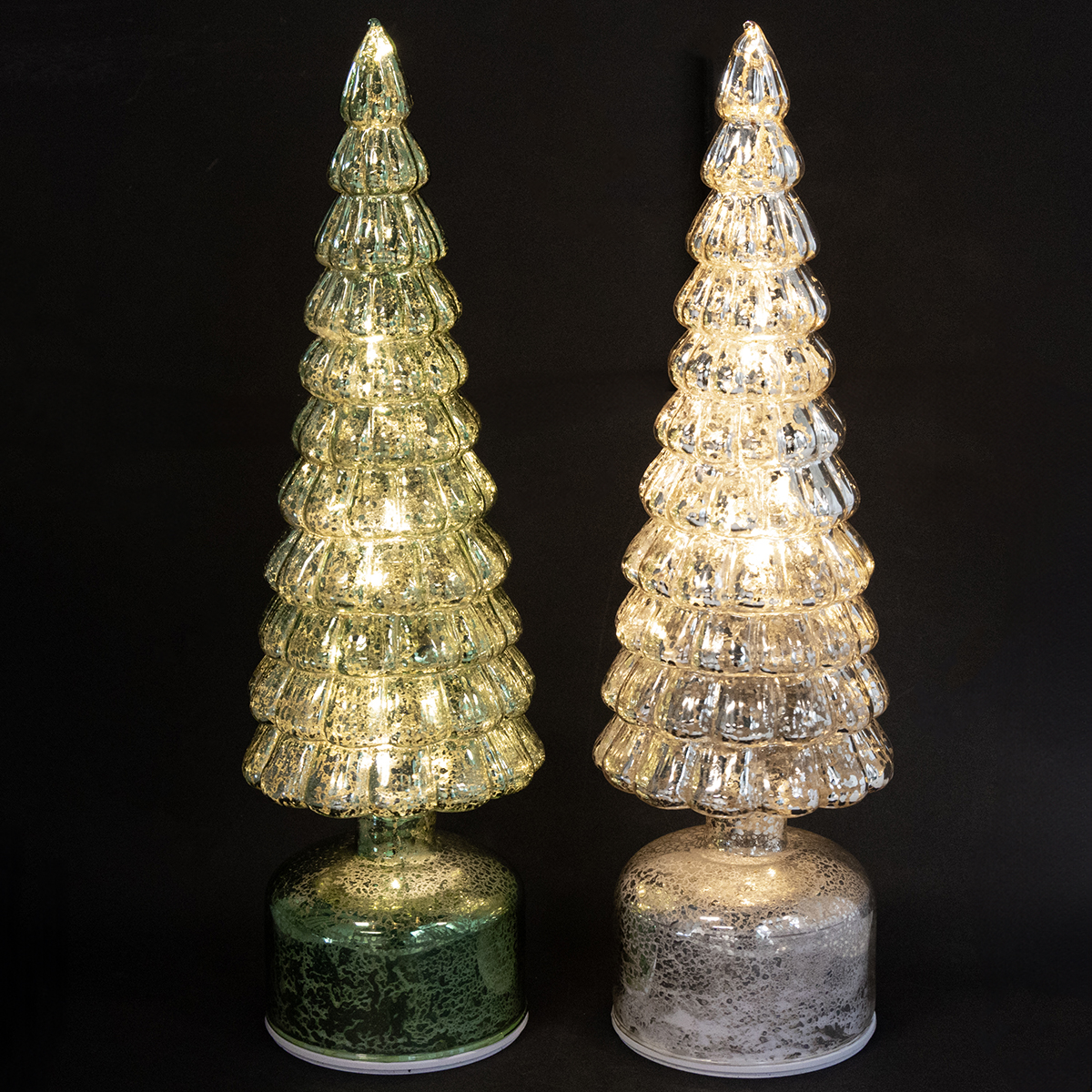 Design unique au style vintage : les sapins de Noël LED en vert et argent