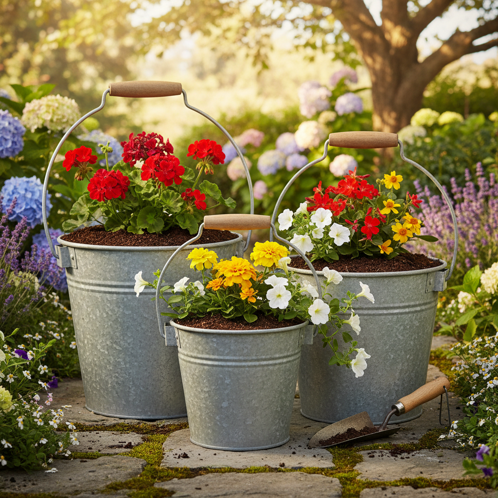 Charmante Vintage-Deko-Eimer aus Metall für Ihr rustikales Ambiente