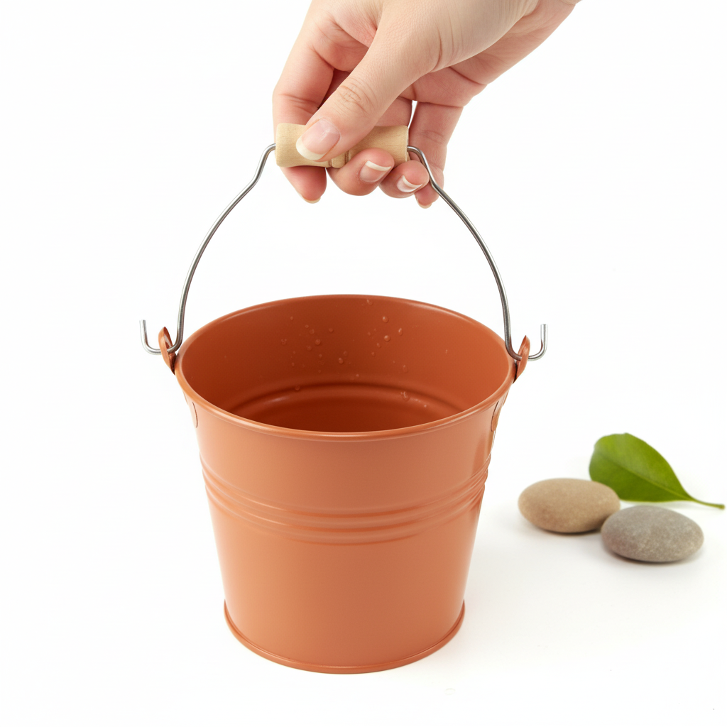 En plus de sa forme classique, le seau possède une poignée mobile, à laquelle est fixée, comme point fort, un manche en bois non traité. Cela donne à la jardinière décorative un beau look vintage qui s'intègre harmonieusement partout.