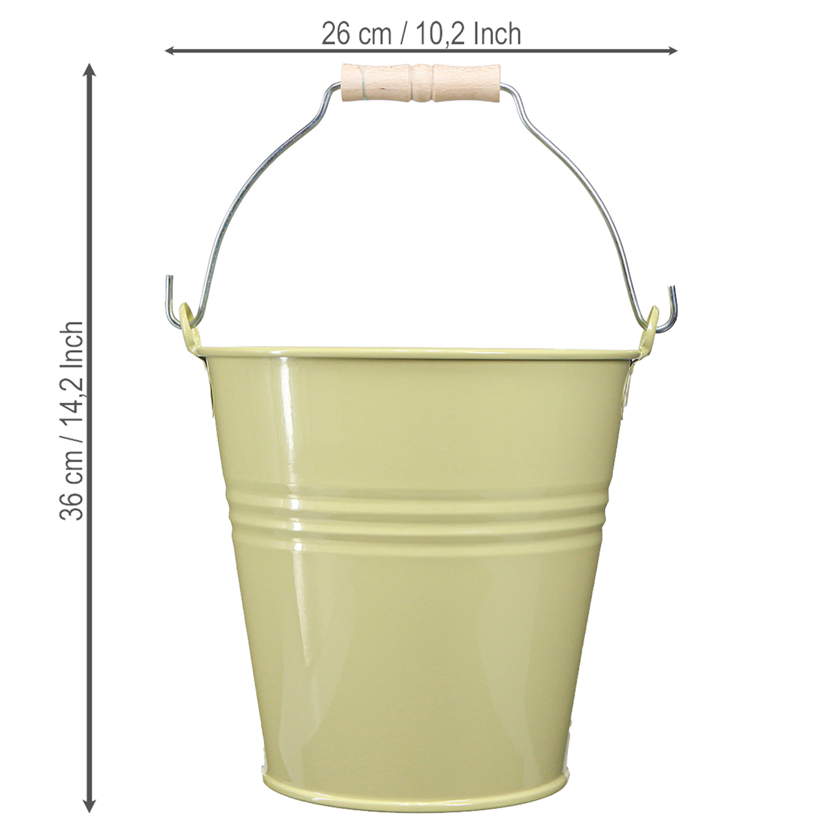 Dekoeimer aus Metall mit Holzgriff