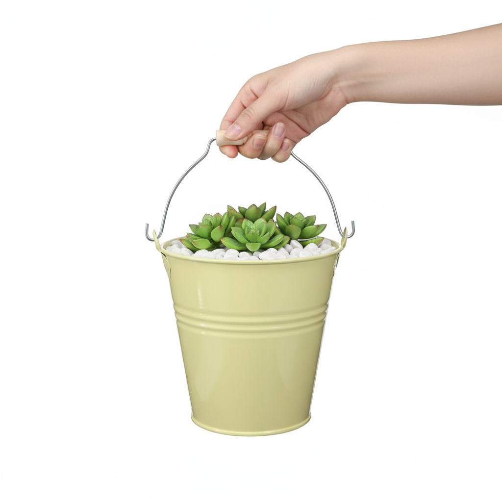 Schicker Eimer aus Metall als Blumenkübel in Grüngelb – der perfekte Deko-Partner für Ihr Zuhause