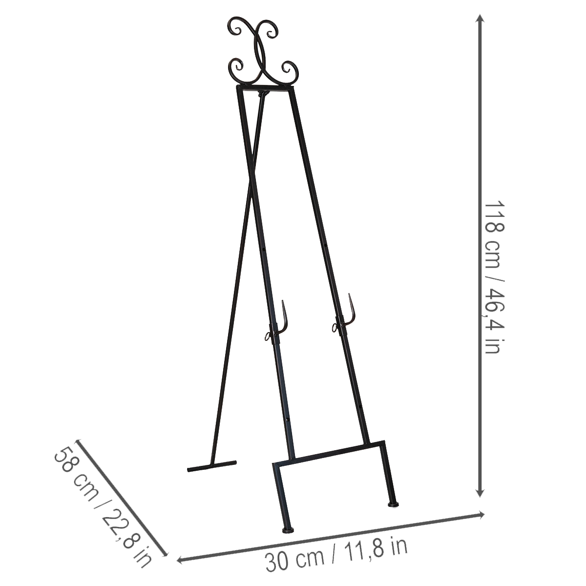 Der schwarze Metall-Kranzhalter kombiniert Eleganz und Funktionalität auf perfekte Weise. Seine stabile Konstruktion und das schlichte, aber stilvolle Design machen ihn zum idealen Zubehör für Feiertagsdekorationen, Hochzeiten oder auch als dezentes Accessoire im Eingangsbereich. Mit einer gut durchdachten Höhe von 118 Zentimetern lenkt er das Augenmerk auf Ihre Dekoelemente, ohne selbst zu aufdringlich zu wirken.