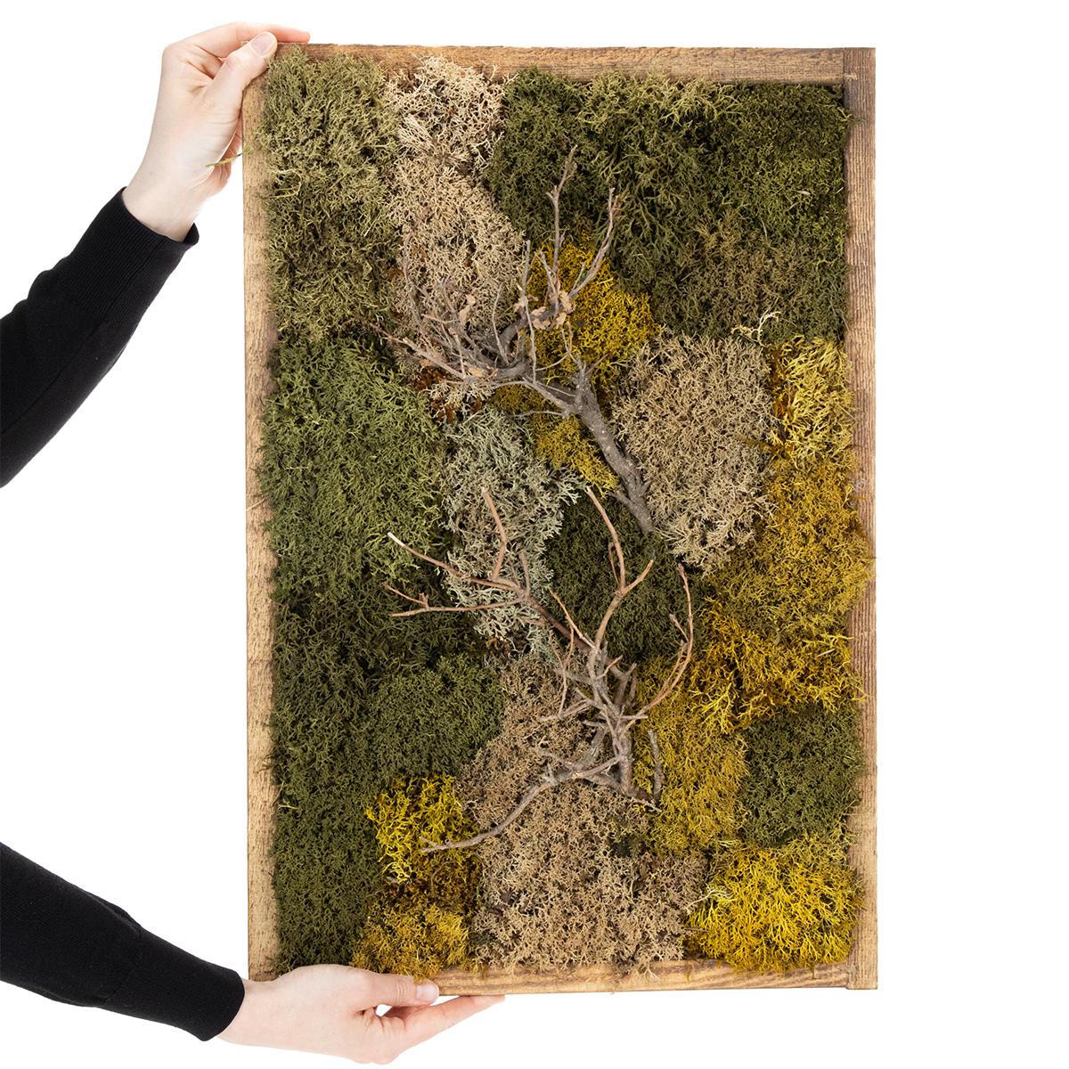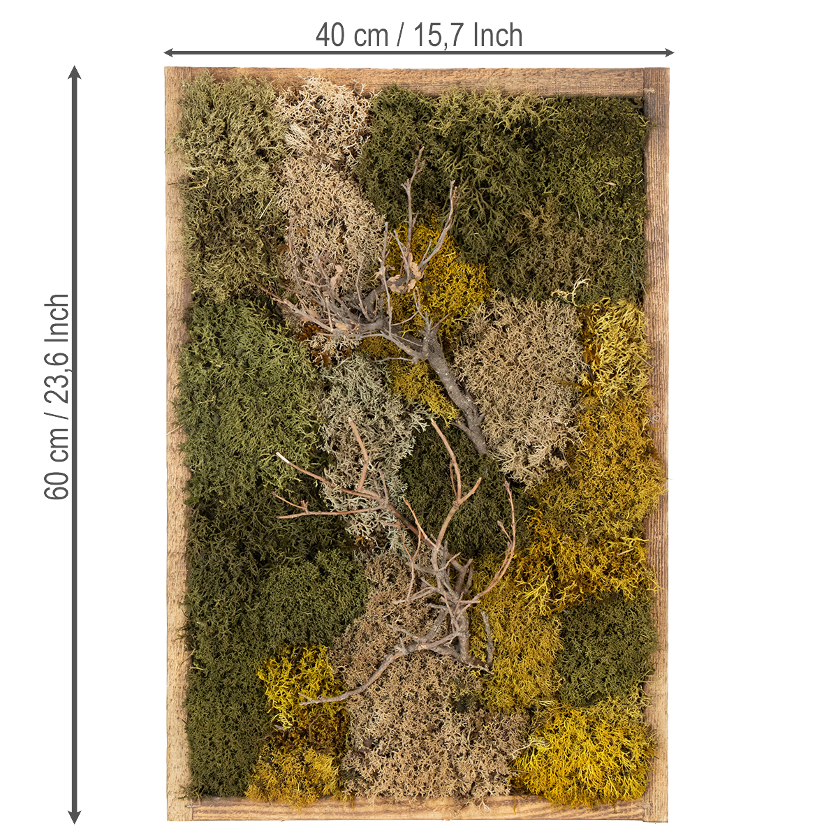 - Einzigartige Mischung aus verschiedenfarbigen Moosen und natürlichen Zweigen