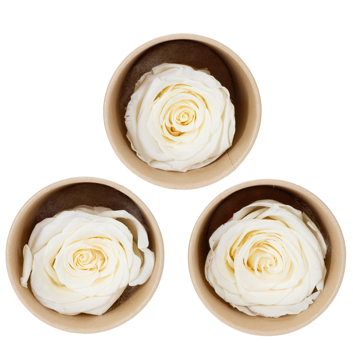 Ces roses blanches stabilisées allient harmonieusement esthétique et durabilité. Mesurant environ 4 centimètres de diamètre et 5 centimètres de hauteur, elles s'intègrent avec élégance à de nombreux styles de décoration. Leur blanc immaculé se fond parfaitement dans une ambiance romantique, qu'elle soit vintage, champêtre ou minimaliste moderne. Les roses ont été soigneusement stabilisées afin de préserver leur forme, leur couleur et leur texture pour de nombreuses années.