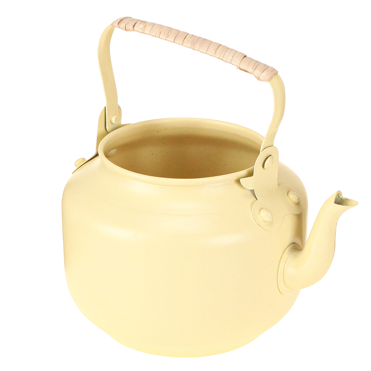 Cette théière jaune décorative est un bel exemple de savoir-faire traditionnel et de design soigné dans un style champêtre. Fabriquée en métal robuste, elle dégage une impression de durabilité à la fois visible et tangible. Sa douce couleur crème aux subtiles nuances jaunes s'harmonise avec une variété de styles de décoration intérieure, du charme rétro rustique au style shabby chic moderne. On remarque particulièrement sa poignée en bois recouverte d'un matériau naturel, à la fois esthétique et agréable au toucher.