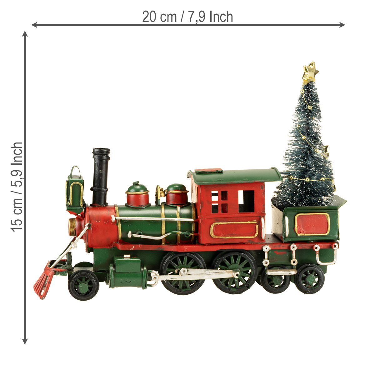 Weihnachtsdeko Metallzug mit Tanne in Grün-Rot für Tisch und Fensterbank