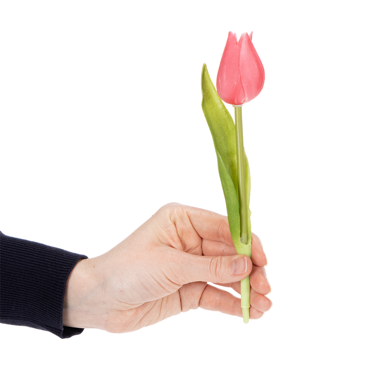 De tulp heeft altijd symbool gestaan voor liefde, genegenheid en elegantie. De sierlijke vorm en zachte uitstraling verlenen haar een bijna poëtische schoonheid. Vooral in het roze symboliseert de tulp tederheid en diepe vriendschap. Daarom is ze uitermate geschikt als klein gebaar van waardering of als romantisch detail in uw interieur. Of het nu voor uw eigen huis is of als cadeau – de boodschap van deze tulpen is altijd oprecht en vol warmte.