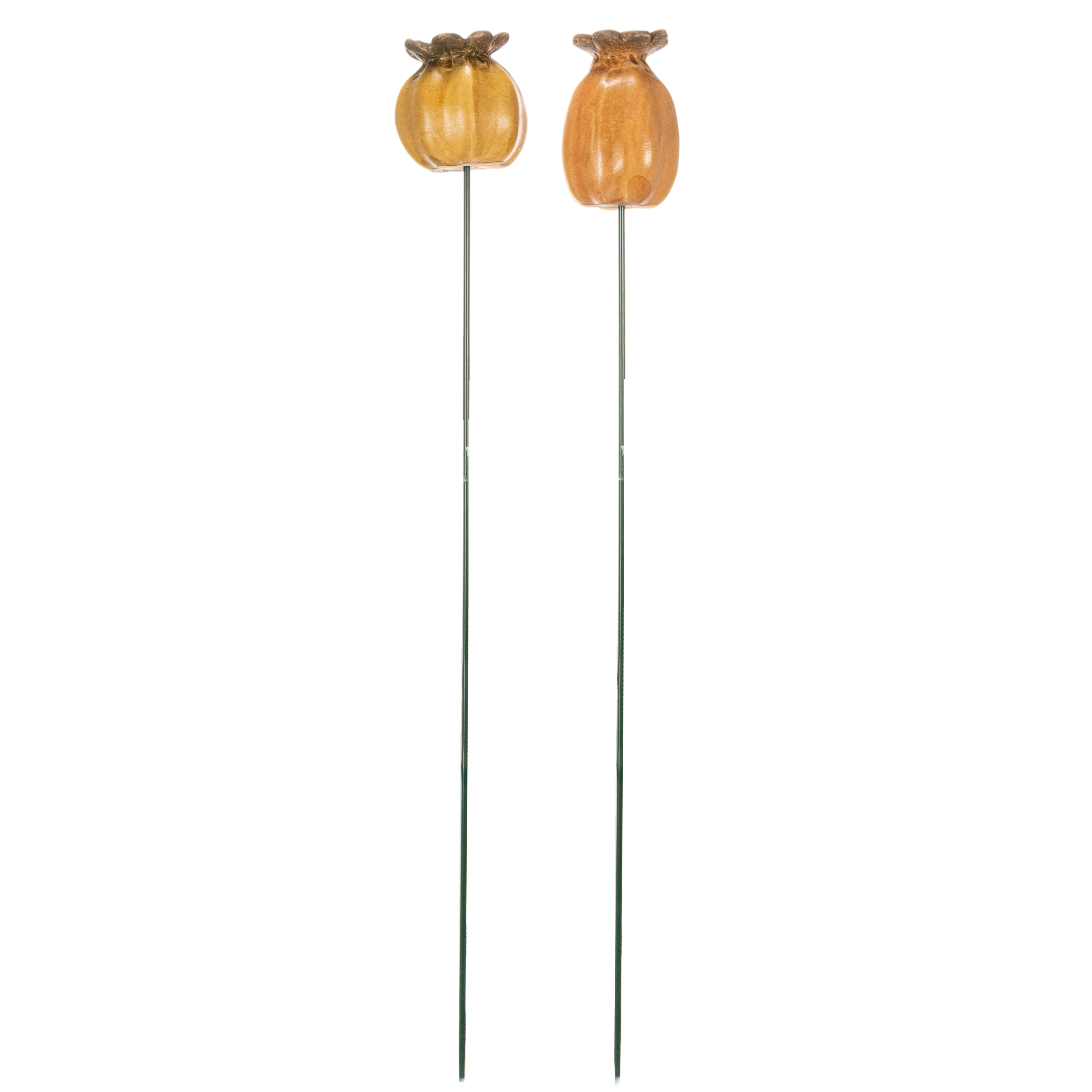 Tuinpaal in de vorm van een klaprooszaadpeul voor een stijlvolle tuin, bloembed of balkon, 60 cm, 2 stuks