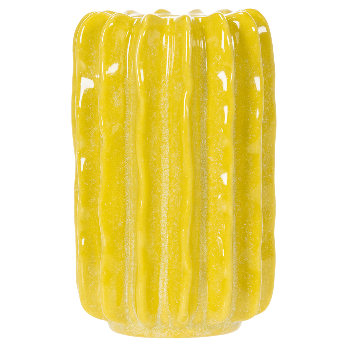 Vase en céramique jaune à motif côtelé : polyvalent et pratique